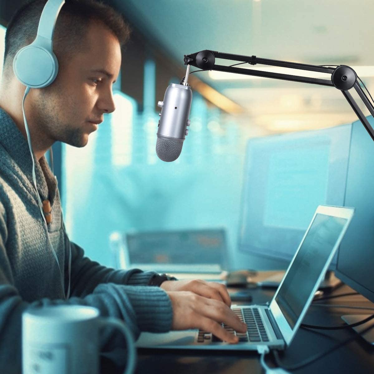 eDSLRs Professional Microphone Suspension Boom Scissor Arm 100cm Heavy Duty with Built-In Spring RODE PSA1 Zoom Meeting Live Stream Gaming Podcast