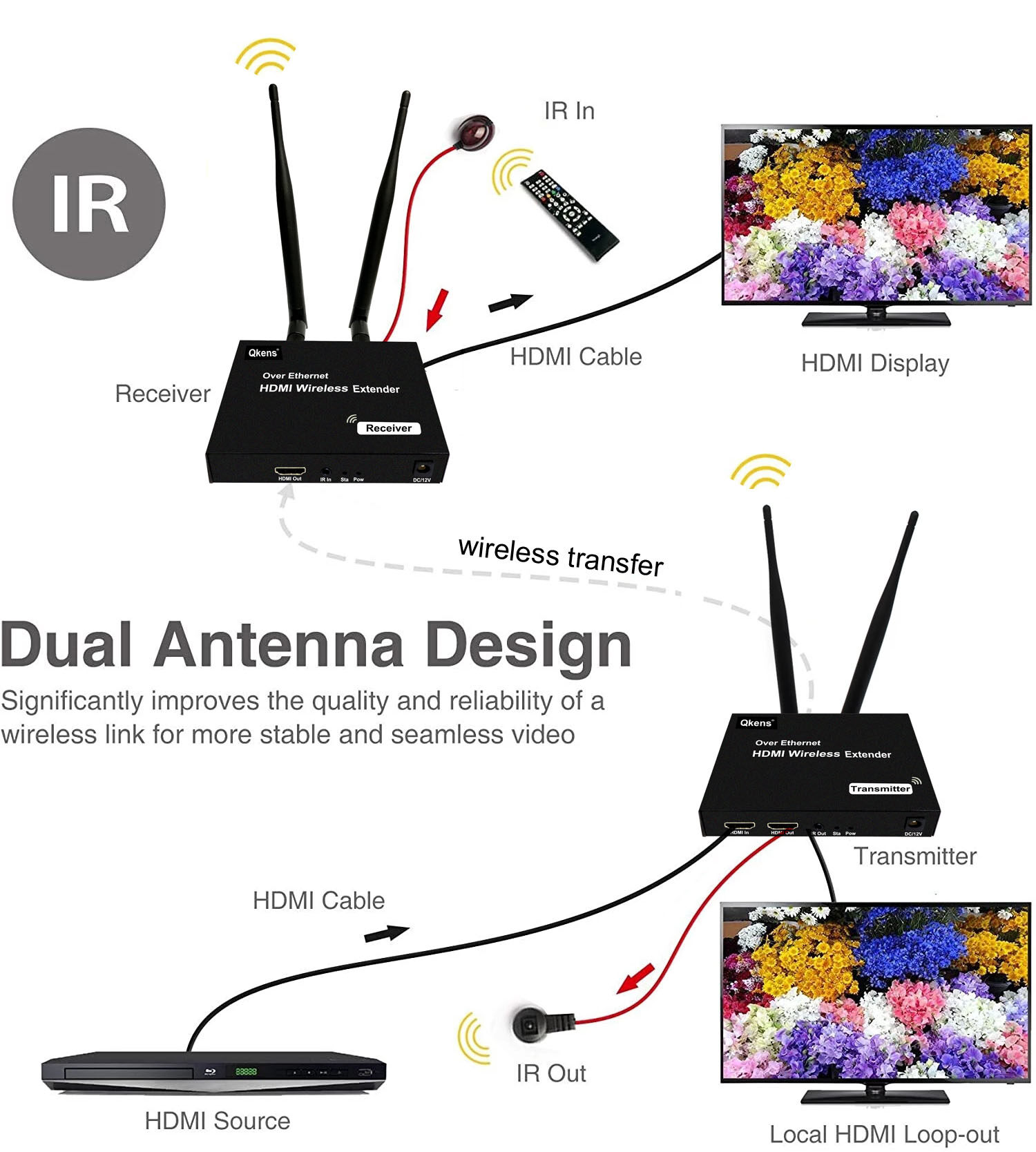 Support HDMI local loop-out and infrared remote control for extended applications, suitable for conferences, training, education, home entertainment and other applications.