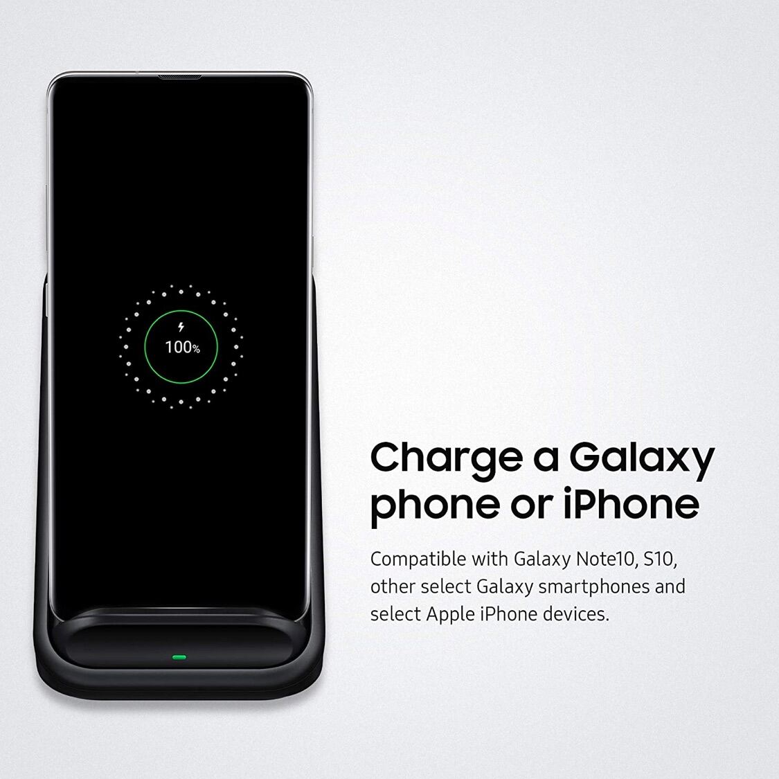 Charge a Galaxy or Apple iPhoneCompatible with Galaxy Note10, S10, other select Galaxy smartphones and select Apple iPhone devices