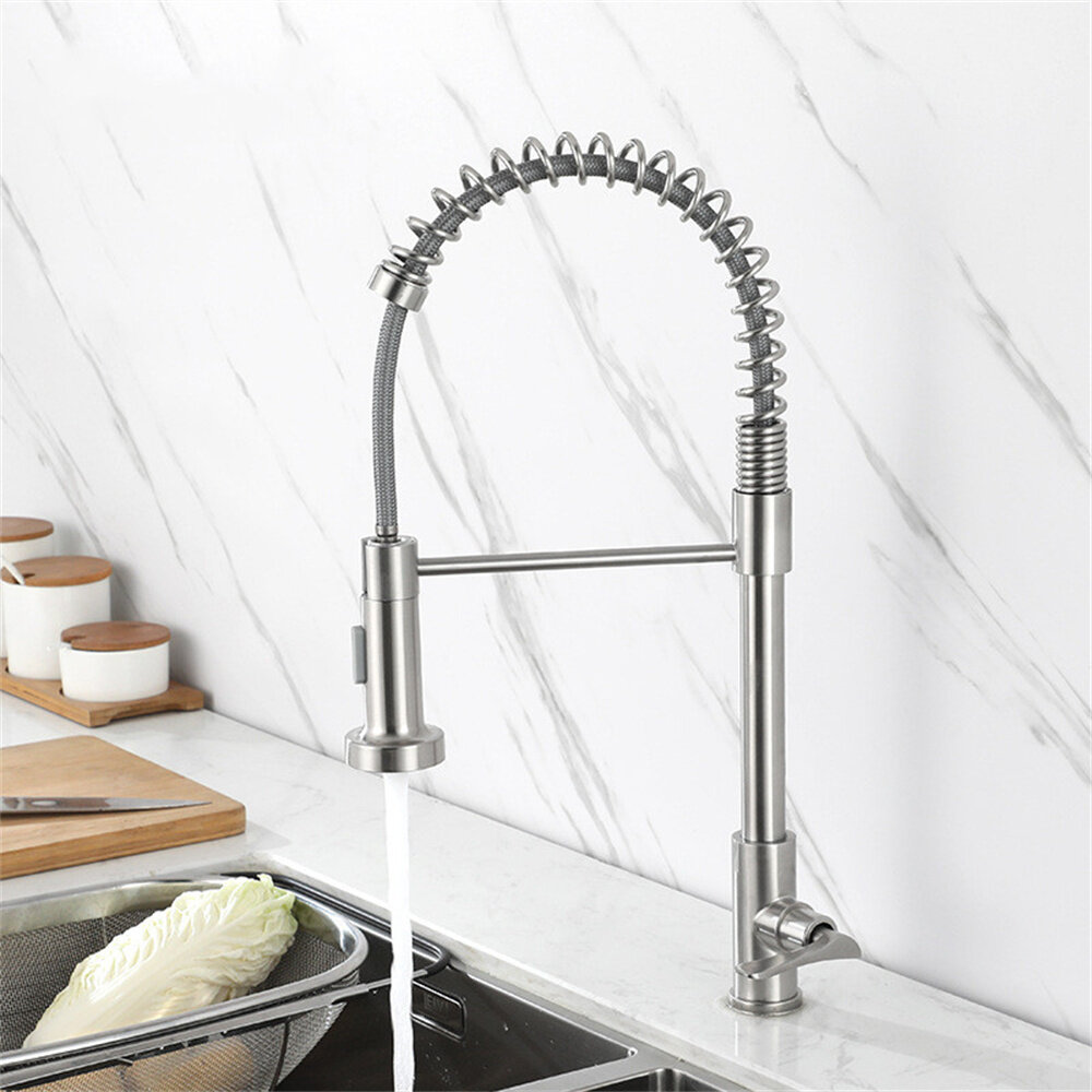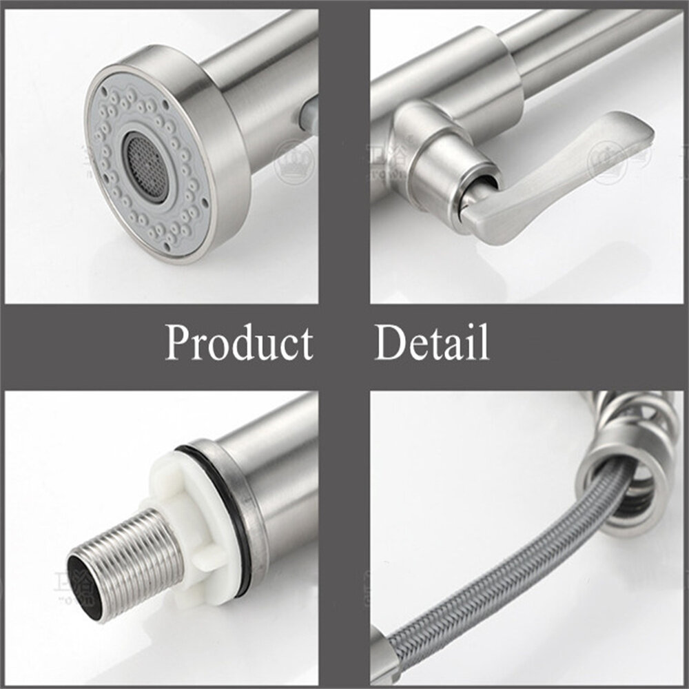 Kitchen sink tap pull out spring faucet 304 stainless steel single cold water faucet deck mounted dual mode water outlet silver kitchen faucet