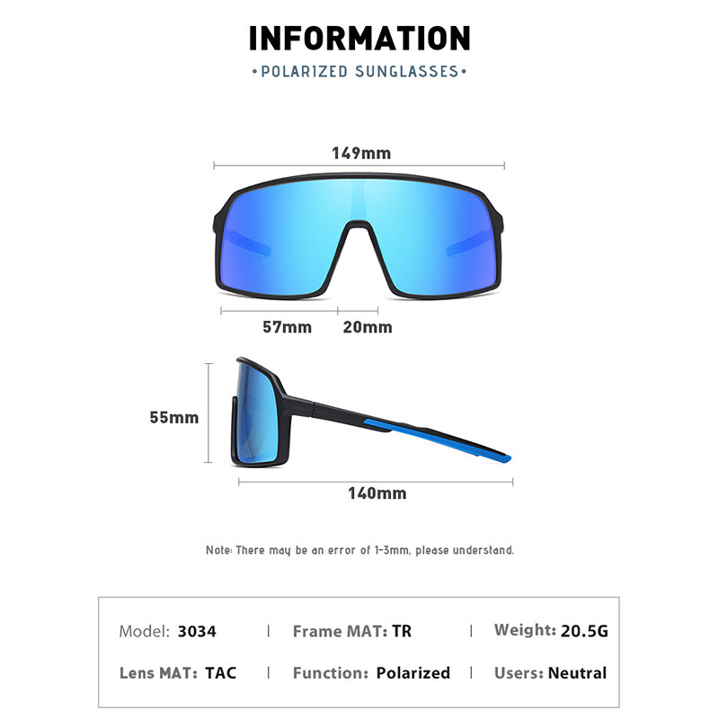 【Specification】 Product Name: Sunglasses Gender: Unisex Brand: PTQ Glasses Style: Square Glasses Structure: Full Frame Lens Material: TAC Frame Material: TR90 Whether Polarized: Yes Anti-UV Grade: UV400 Visible Light Transmittance: 99% Glasses Color: 7 Colors To Choose From Glasses Weight: 50g Suitable For Face Shape: Various Face Shapes Applicable Scene: Sun Protection, Outdoor Sports, Riding Style: Sports