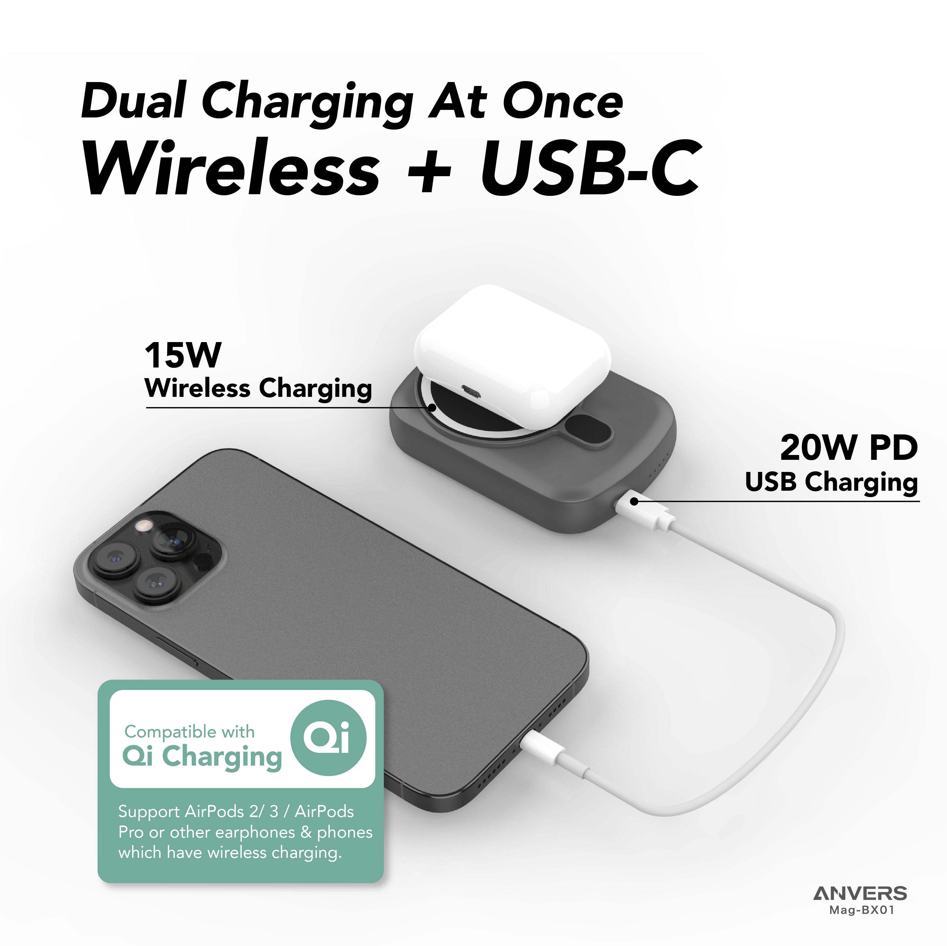 Anvers Magsafe Power Bank Wireless Magnetic Fast Charging Battery Pack Protable Charger for iPhone 16/15/14/13/12