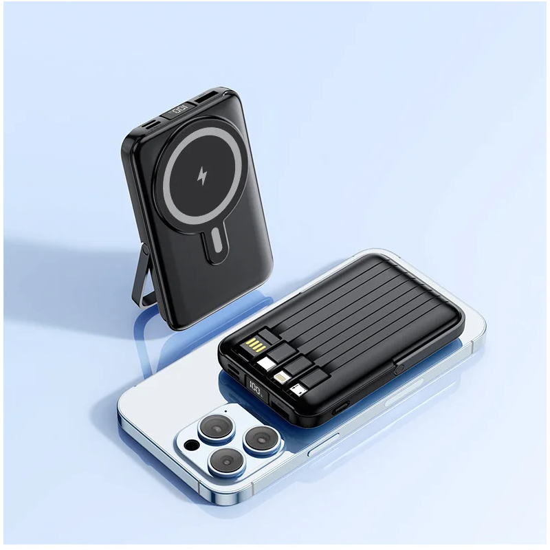 10000mAh Wireless Magnetic Powerbank Comes with Cables and Foldable Stand Suitable for all type of phones, watch and earphones that support wireless charge