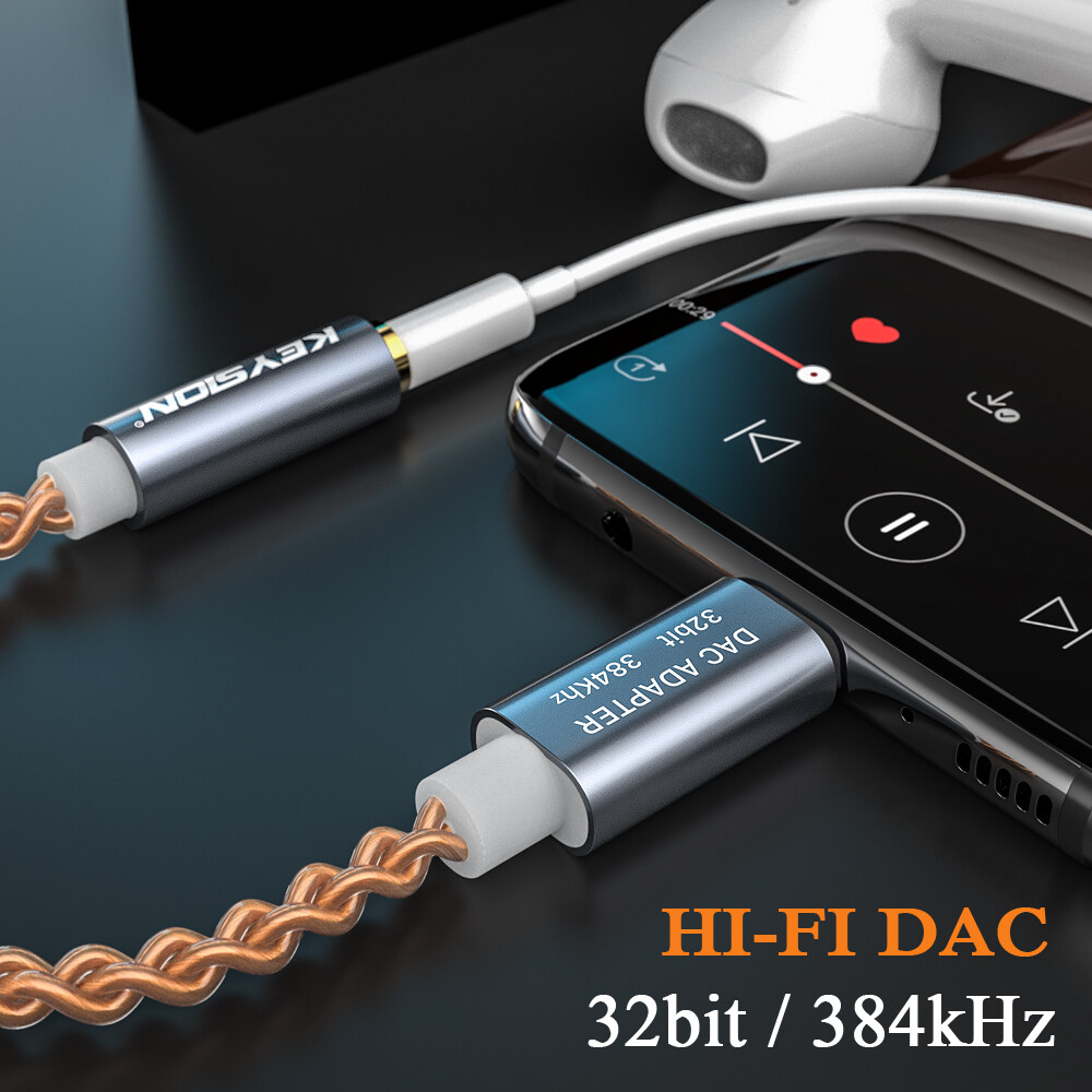 KEYSION HIFI DAC earphone Amplifier USB Type C to 3.5mm Headphone Jack audio adapter 32bit 384kHz Digital Decoder AUX Converter