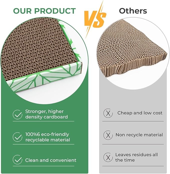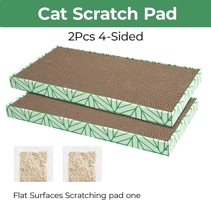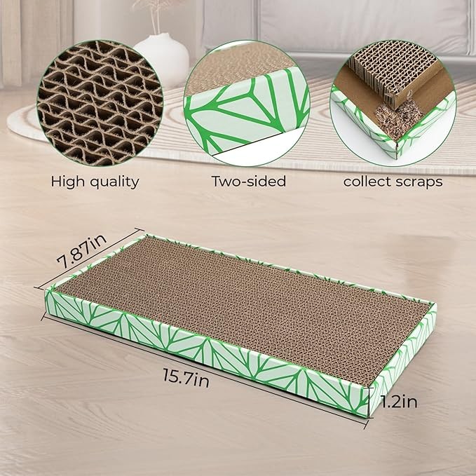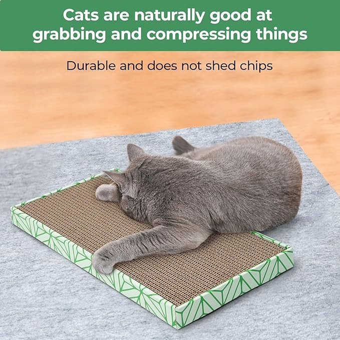 • 【Durable and Claw Resistant】:Made from high-density corrugated cardboard, the scratch pad is tough yet replaceable, reducing debris from scratching and offering long-lasting use.