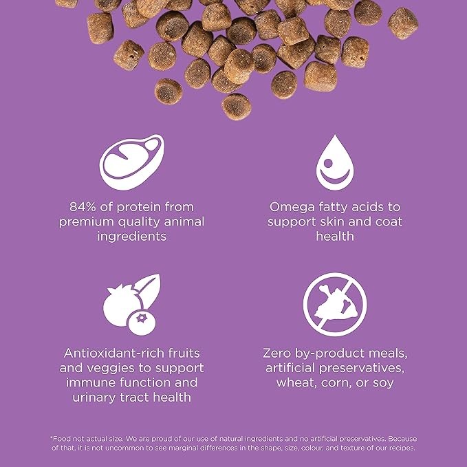 • COMPLETE + BALANCED NUTRITION FOR CATS OF ALL AGES: Premium cat food made with maximum meat protein to support healthy cats at every age, with antioxidant-rich cranberries to support urinary tract health and taurine to support vision + heart health.