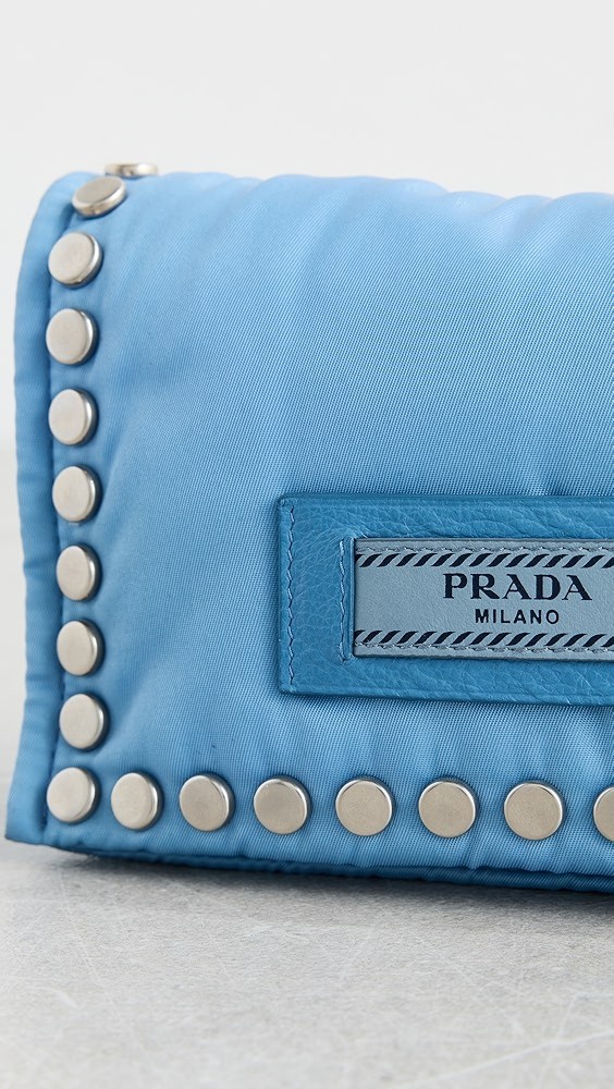 Prada Blue Nylon Studded Etiquette Wallet On Chain